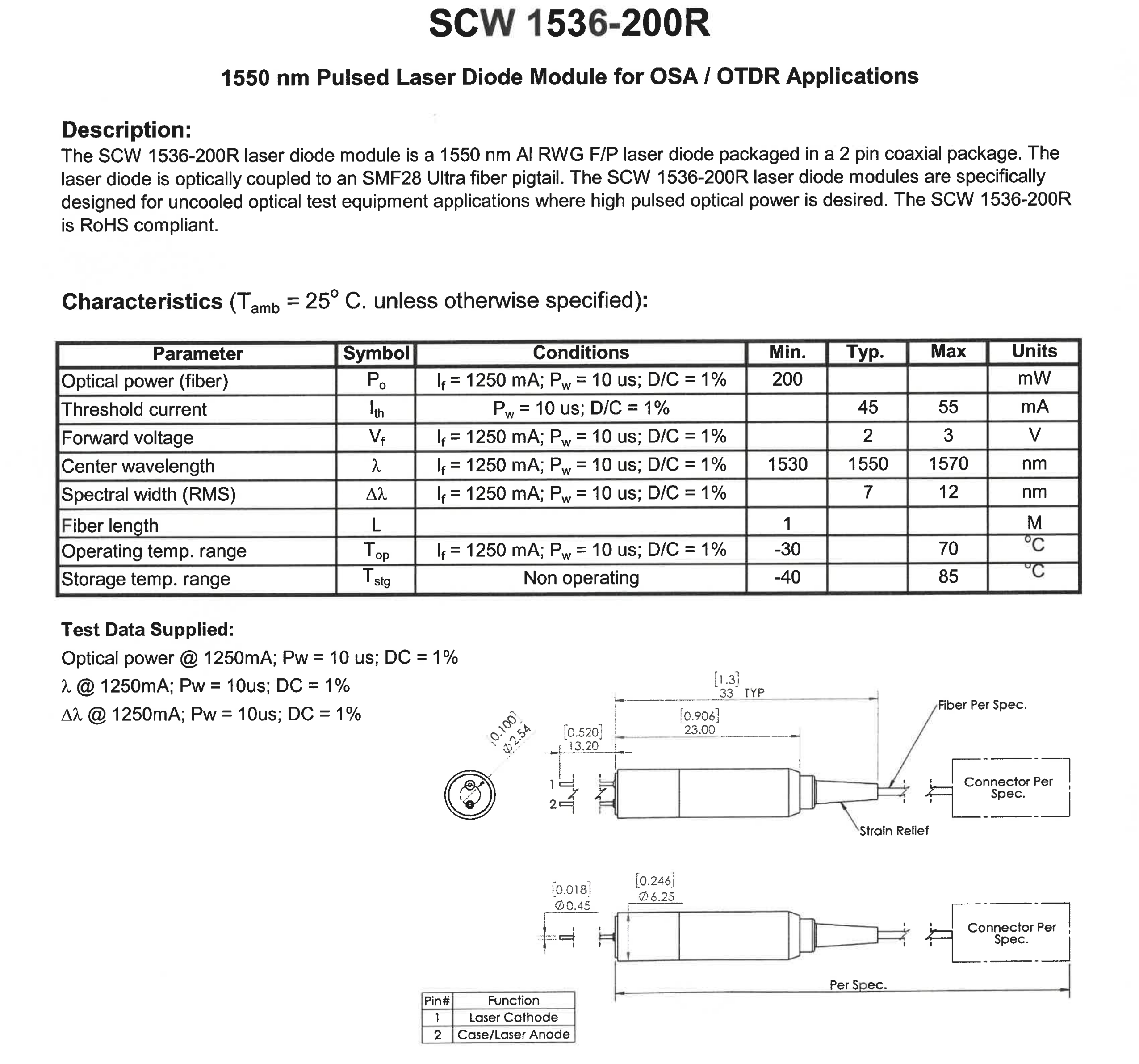1550nm高功率脉冲激光二极管/OSA&OTDR应用