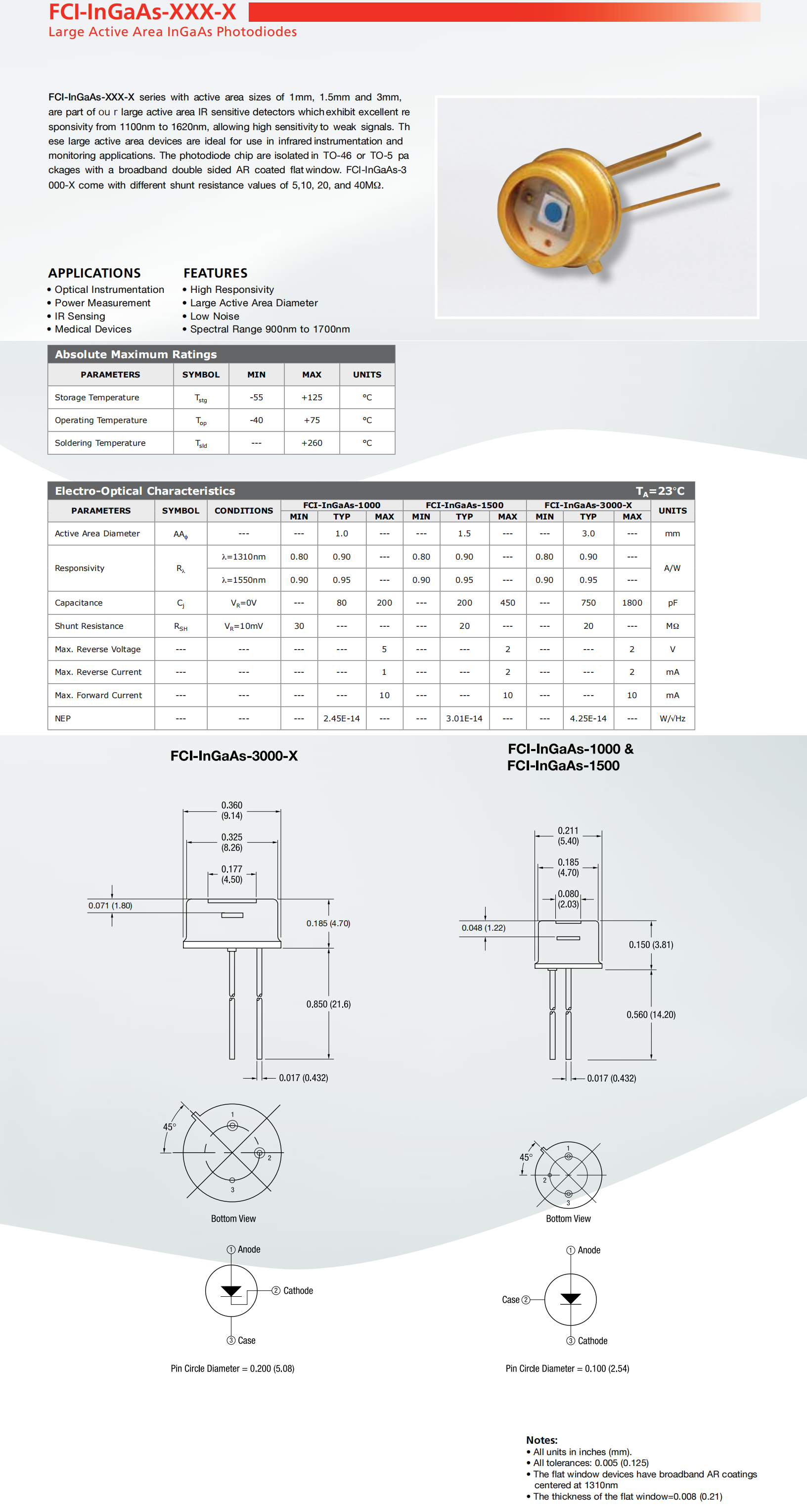 光学测试与测量 > 光电探测器 > 标准InGaAs光电二极管