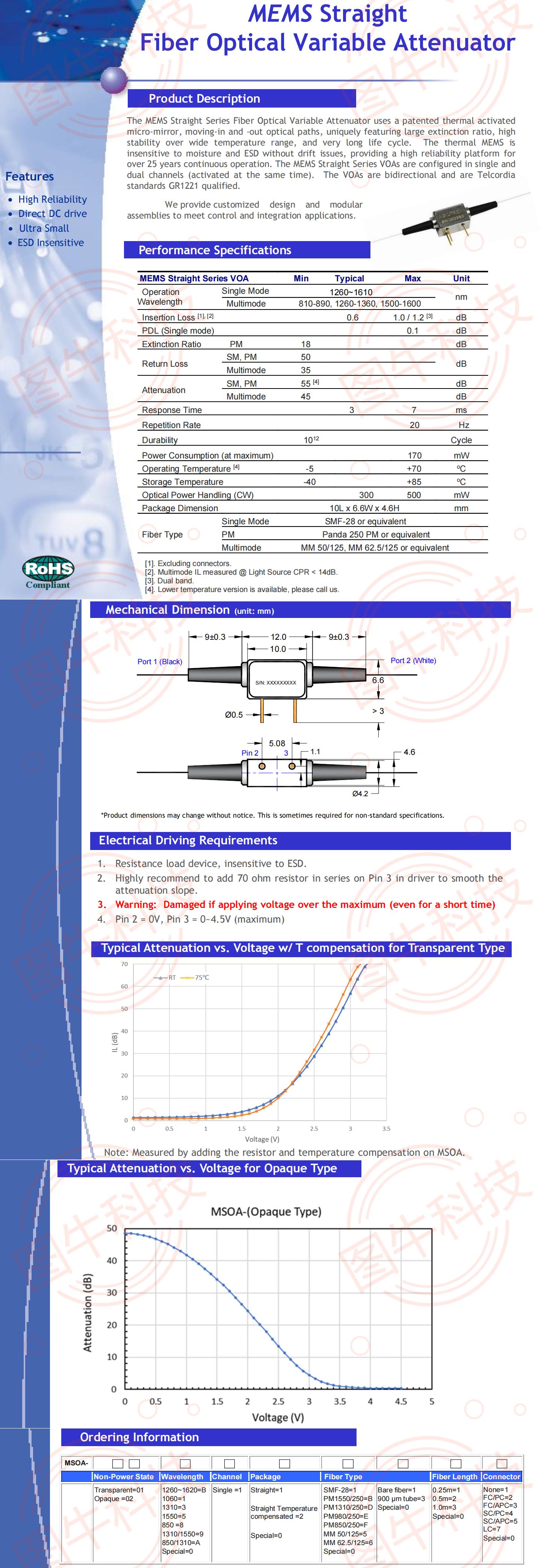 光束控制类 > 光纤类衰减器 > MEMS可变光衰减器
