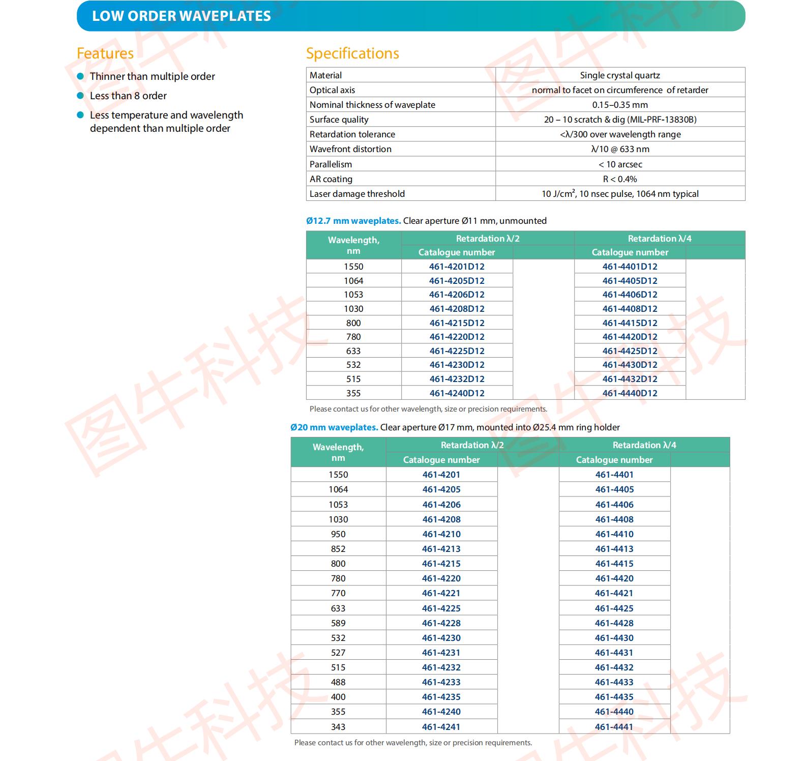 偏振光学 > 波片 > 零级&低阶&多级波片