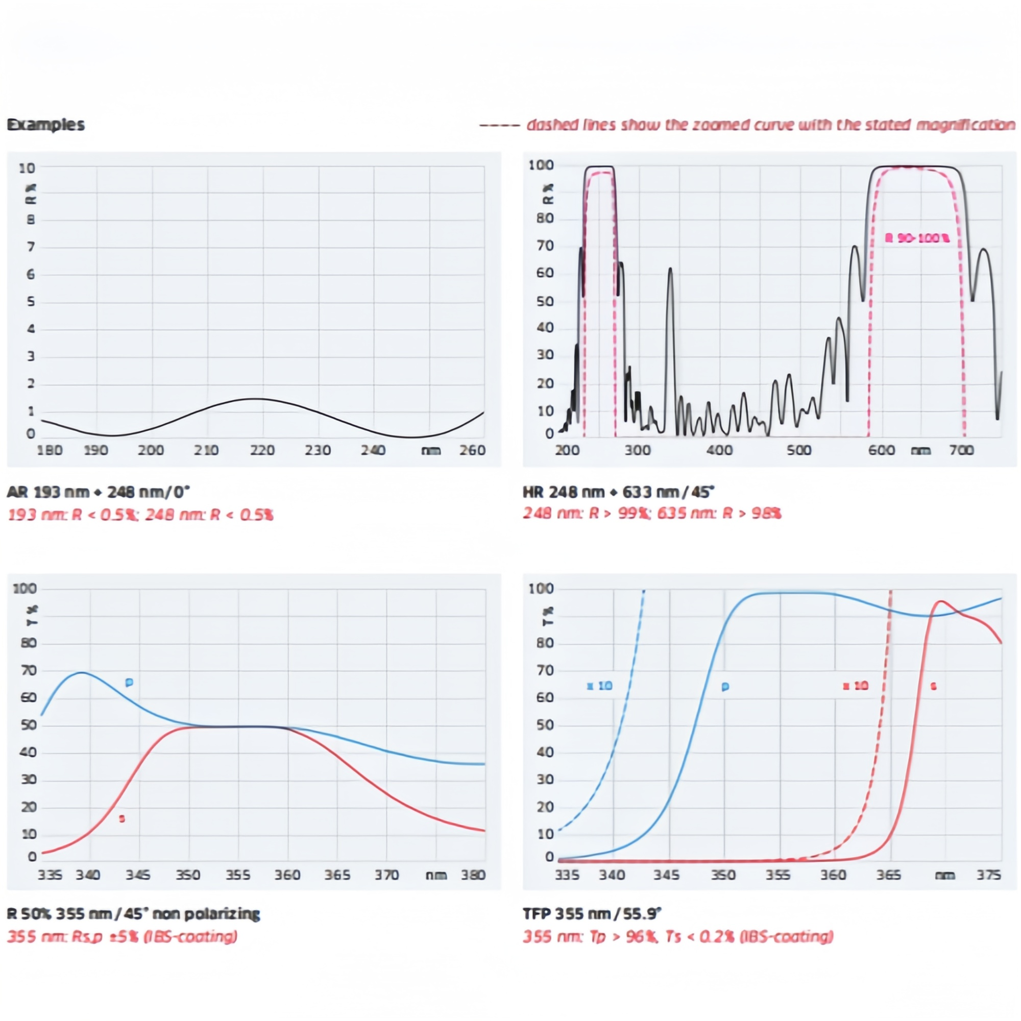 注:更多镀膜选项/规格(如高透过率/反射率、功率等),请直接联系我们讨论您的需求。